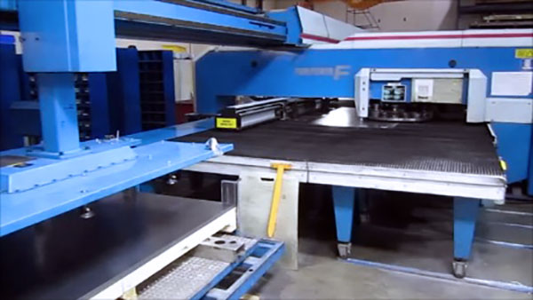 Maskinen har en stansyta på 3000mm x 1500mm och stansar upp till 4mm i svart material och 3mm i rostfritt. Maskinen har automatisk laddning och plundring av plåt.